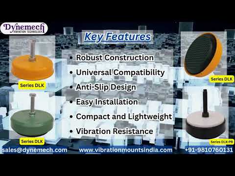 Dynemech DLMS Series Antivibration Mounts, developed in steel and stainless steel respectively are simple and effective vibration dampers for machines with respective holes in the base. These mounts offer low frequency attenuation, stable machine levelling and vibration reduction. The flexible levelling screw accommodates uneven/sloped surface up to 5 degree. DLMS Series find application where corrosion resistant materials for hygienic, climatic and environmental reasons are required like in pharmaceutical, food and beverages processing and packaging units, medical equipment manufacturing and chemical processing industries.